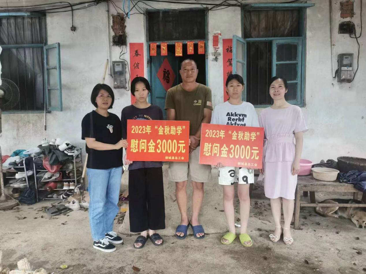 为帮助困难职工(农民工)家庭解决子女上学难、就业难问题,柳城县总工会于8月积极开展2023年度“金秋助学”暖心活动。柳城县总工会副主席李艳一行走访慰问因患病、子女上学、残疾及其他特殊原因造成生活困难的职工家庭,对符合要求的困难职工子女送去助学慰问金。