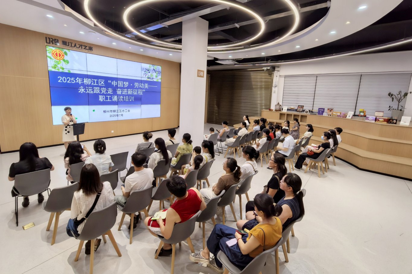 为热烈庆祝中华全国总工会成立100周年,提高职工文化素养,7月15日,柳江区总工会在柳江人才之家举办2025年“中国梦·劳动美——永远跟党走 奋进新征程”柳江区职工诵读培训,40余名职工参加培训。
