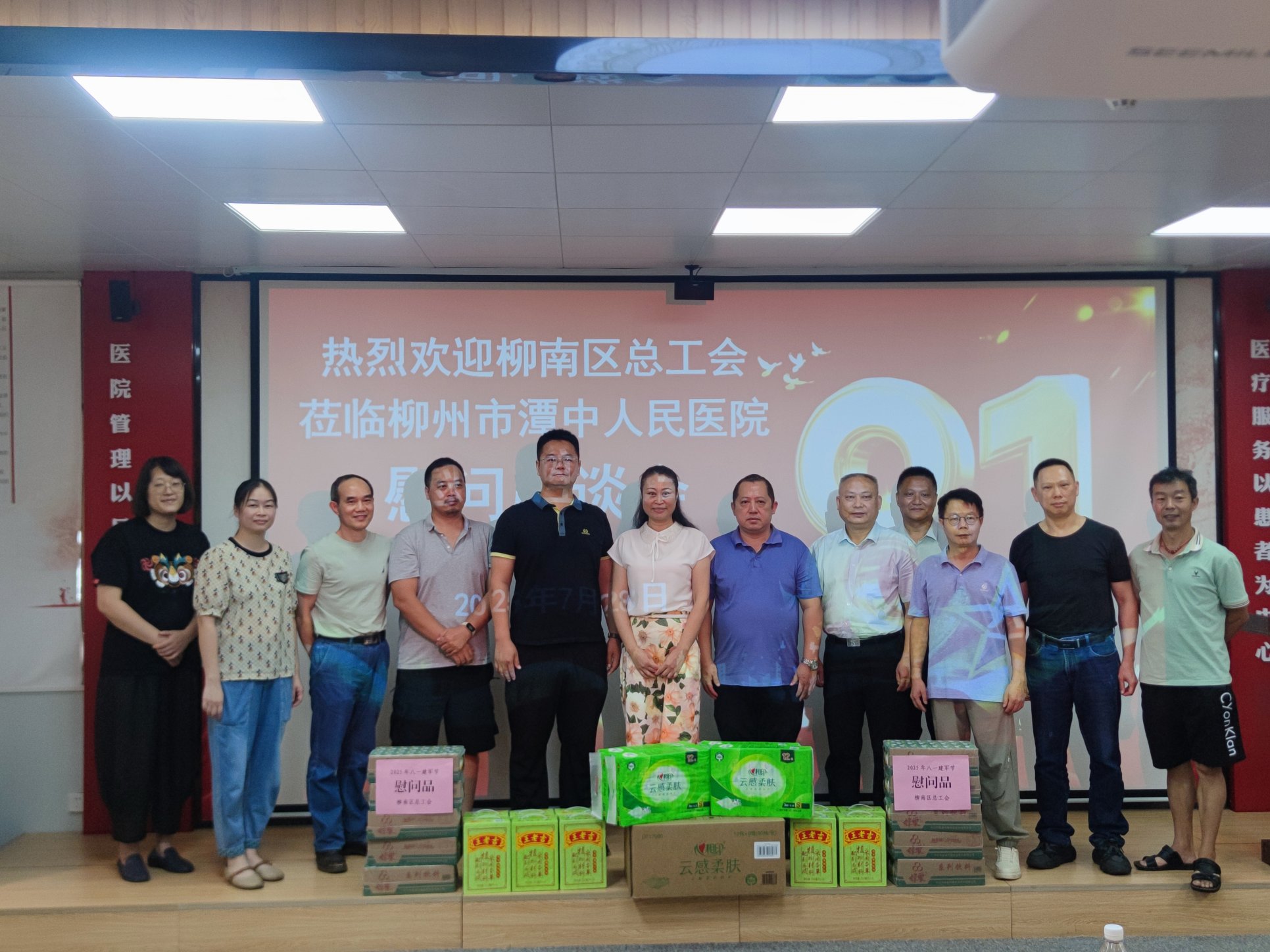 7月28日,柳州市潭中人民医院的会议室里暖意融融。柳南区总工会党组书记、副主席蒋晓梅,柳南区总工会副主席、党组成员黄国君带队与医院退转军人、军属代表围坐一堂,一场“八一”座谈会,聊的是家常,暖的是人心。