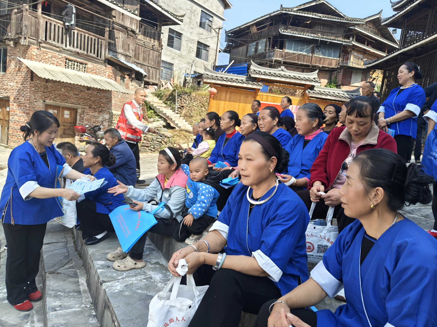 10月29日,三江县总工会组织普法志愿小队走进高秀村,围绕“凝聚民族情、汇聚民族力、同圆民族梦”主题开展普法宣传活动,为村内各族群众送上“法治大礼包”。