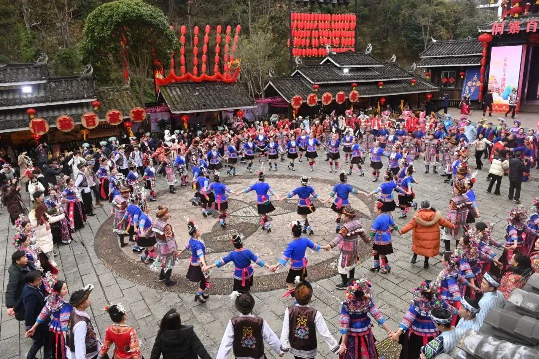▲2月3日,2024年全国春节“村晚”主会场活动在广西柳州三江侗族自治县精彩上演。本次活动是文化和旅游部主办的“欢欢喜喜过大年”春节主题重点项目之一,主题为“侗寨百家宴 欢乐中国年”。   新华社记者 陆波岸 摄