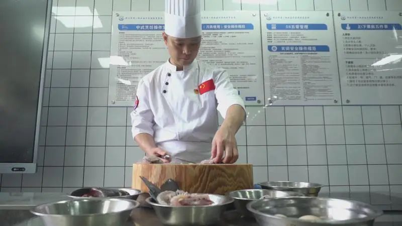 “他在上课之前先跟我们说他的要求,比如说自己的砧板、刀以及抹布,刀是用来切东西的,该怎么摆放,抹布怎么摆放,然后把自己的卫生整理干净。”一职校学生韦广兴说,通过李老师的教学,让他的职业素养有了一个提升。