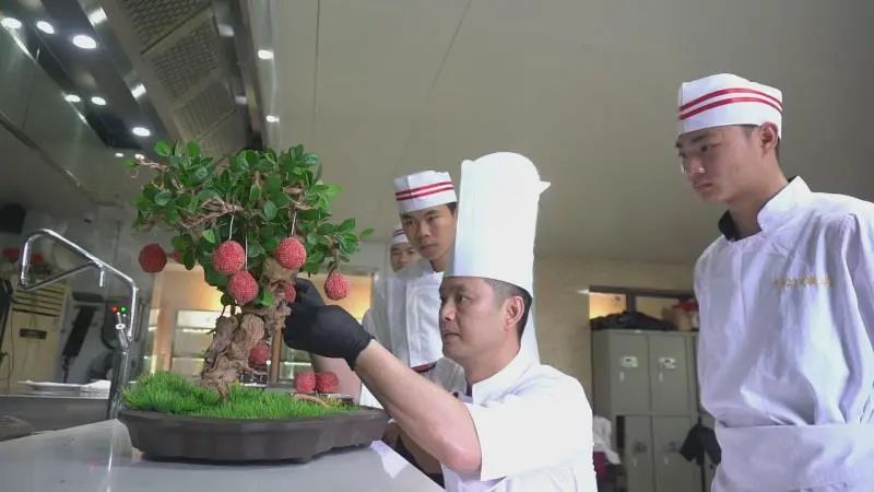 “我把艺术家的这种执着追求融入到我对餐饮业的执着追求当中,我亲自设计了一个迷你的荔枝树和小红楼,通过这个菜品把对艺术的追求展现出来。”