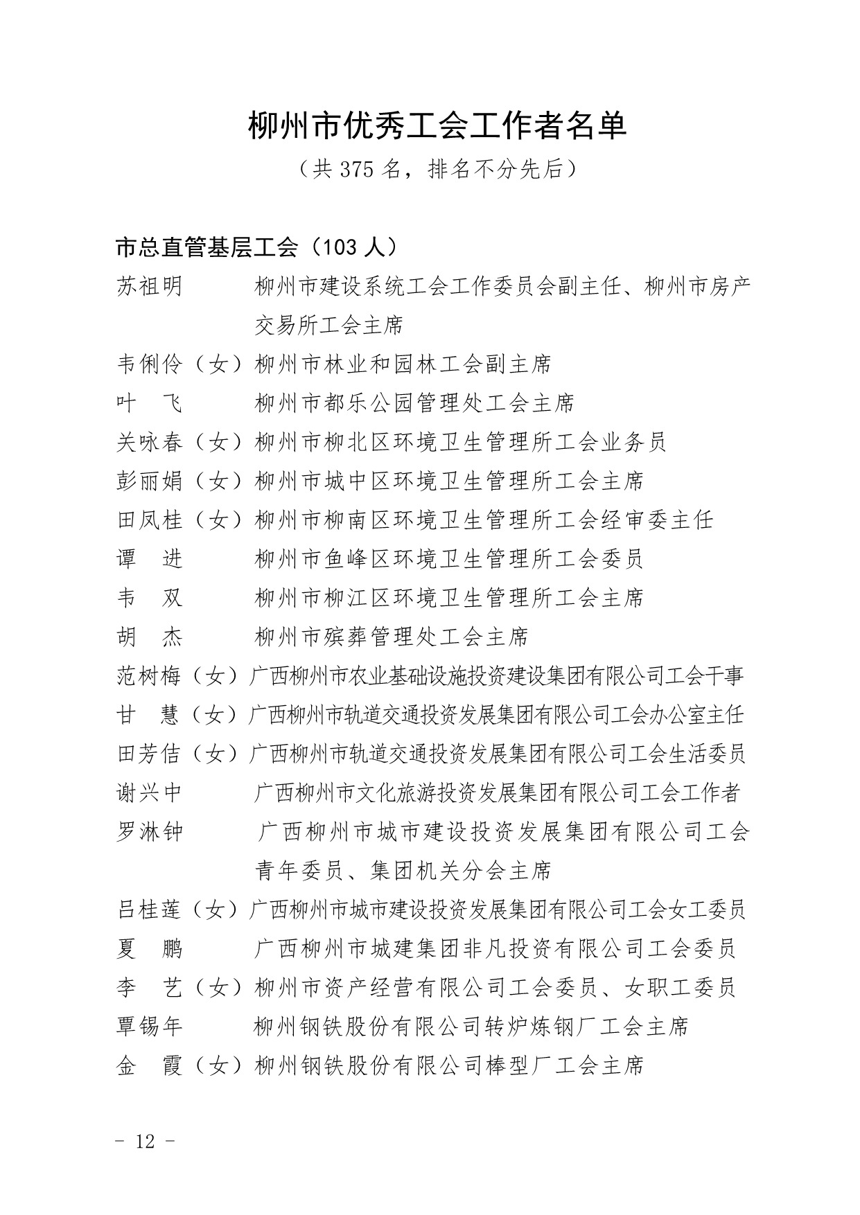 关于确认2021年度柳州市先进职工之家、先进职工小家和柳州市优秀工会工作者、优秀工会积极分子、优秀工会之友结果的通报