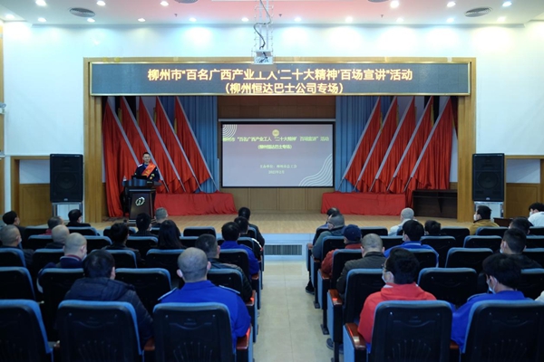 为深入学习贯彻党的二十大精神,引领广大职工将其内化于心、外化于行。2月22日上午,“百名广西产业工人‘党的二十大精神’百场宣讲”活动在柳州恒达巴士股份有限公司二楼大礼堂举行。