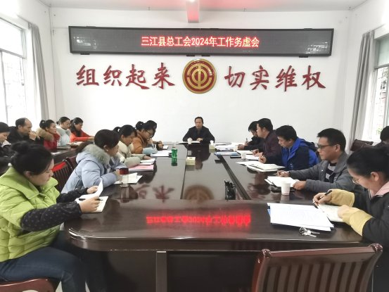 1月12日,三江县总工会召开2024年工作务虚会,会议听取部门分管领导和全体参会职工总结汇报2023年工作特色亮点,明确2024年工作重点,凝聚奋进力量。县政协副主席、县总工会主席吴隆参加会议并讲话,县总工会党组书记、副主席杨建平主持会议,县总工会全体干部职工参加会议。